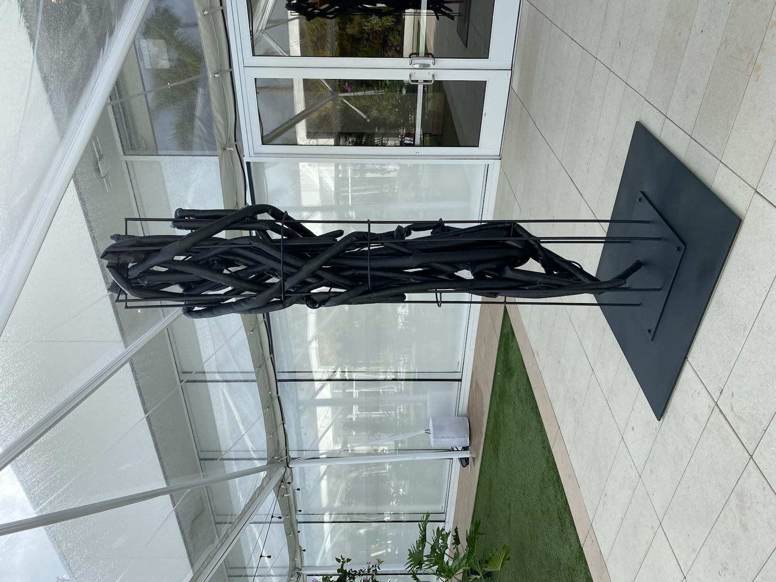 In partnership with Frieze Sculpture, LAND (Los Angeles Nomadic Division) commissioned a new sculpture by Los Angeles-based artist Isabel Yellin entitled Pillar of the Intangible. A continuation of Yellin’s visual language, the sculpture plays with hardness and softness, the duality of our internal experience and external presentation. The work is a connective structure that invites as much as it confounds. The organic, soft forms rendered permanent encompass the contradictory and confounding expanse of time that we move through, the daily obstacles we face, and the fluidity demanded of our rigid, breakable bodies.