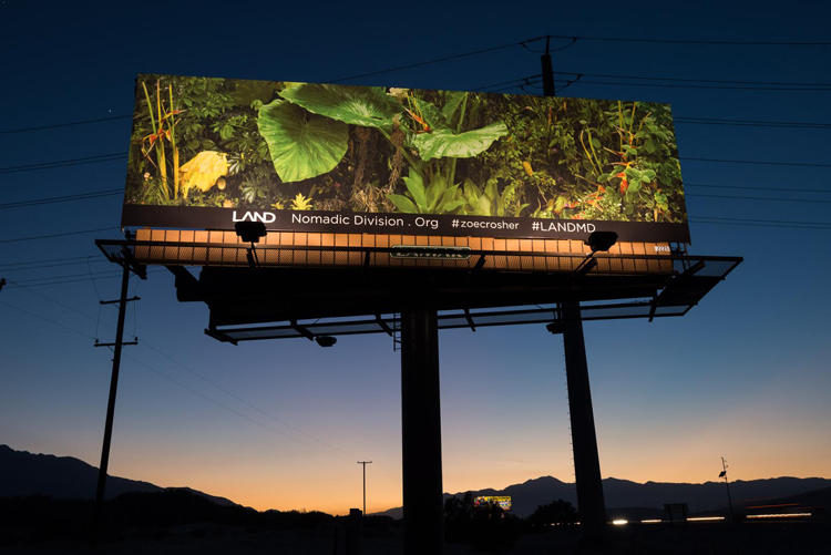 The launch of the billboards was presented in conjunction with Crosher’s installation Expanded LA-LIKE: The Actual Shangri-LA’d Disappearing Wall at the Palm Springs Art Museum in Palm Desert. Various activations and events took place during the opening weekend celebration, including the unveiling of a version of the flora wall depicted on Crosher’s billboards, made in collaboration with Palm Springs floral artist Briana Burt of Eventscapes, along with two performances of Scott Benzel’s Desert Center (Composition I-10, Mvmt IV: Dusk), a sound composition designed to respond to the traffic patterns and harmonics of I-10. For more information, please visit www.psmuseum.org, or call (760) 346-5600.